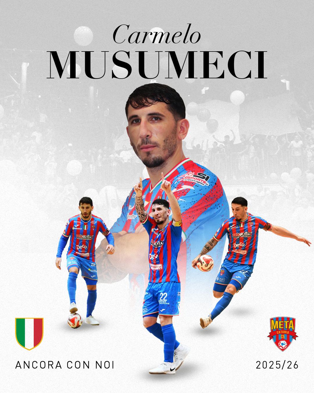 La Meta Catania è orgogliosa di annunciare il rinnovo del suo legame con il simbolo e capitano Carmelo Musumeci, che vestirà per l’undicesima stagione consecutiva la maglia rossazzurra con un accordo che lo legherà al club fino a giugno 2027.