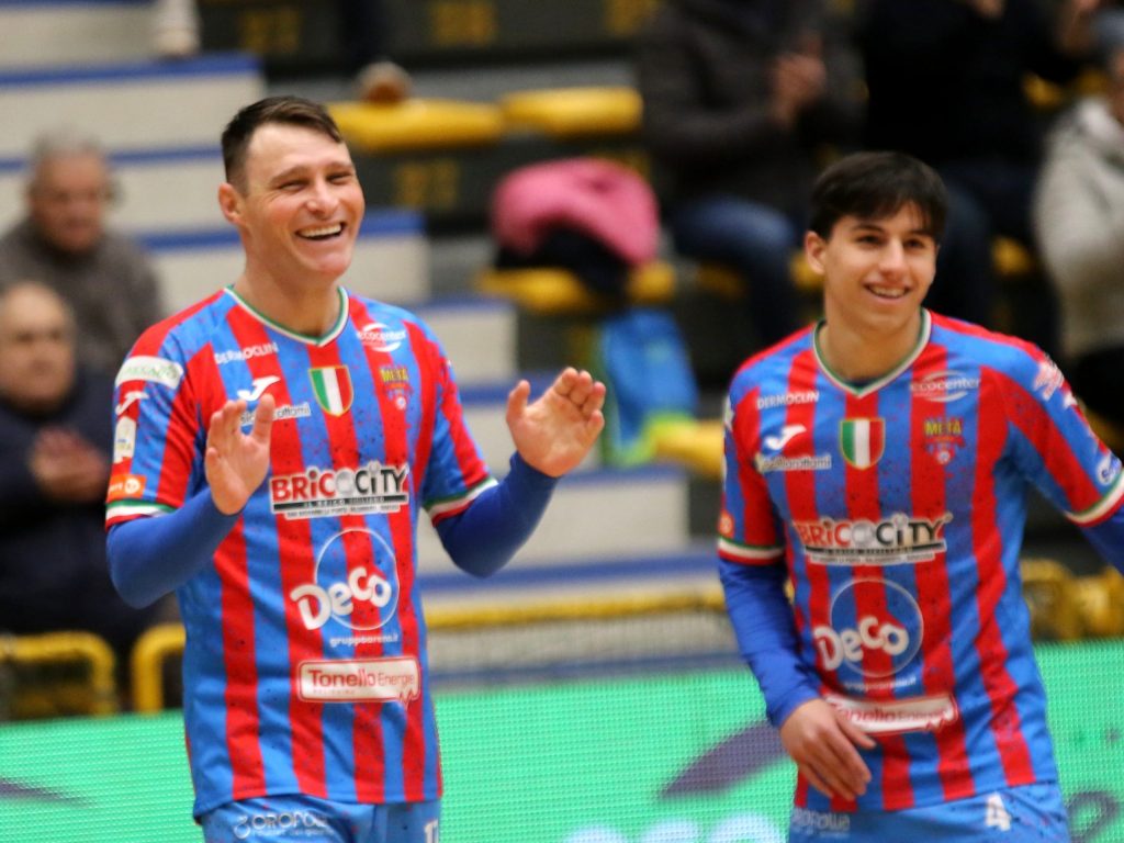 Vittoria e reazione. La Meta Catania batte Manfredonia con un sonoro 9-1 e mette pressione alla testa della classifica. Una gara dominata e condotta dai rossazzurri dal primo all’ultimo minuto con coach Juanra che ha riconsegnato minutaggio dal primo minuto al portiere Joao Timm rientrato dopo l’intervento al menisco di due mesi orsono. Rossazzurri che […]