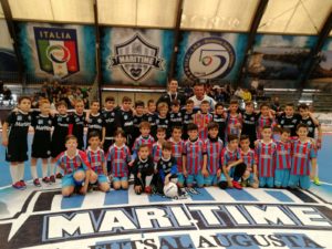 Una grande giornata di sport al Palajonio di Augusta con i bambini delle scuole calcio di Maritime e Meta Catania. Divertimento, gioia a ritmo di
